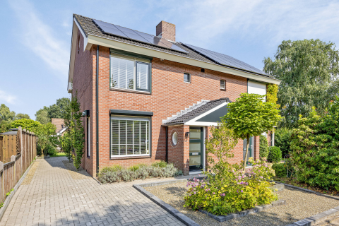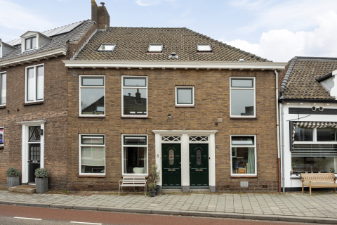 Via de klassieke voordeur stap je binnen in de royale hal, waar meteen de fraaie trappartij en de karakteristieke glas-in-loodramen de aandacht trekken. Vanuit de hal heb je toegang tot het toilet en de living. De woonkamer en suite is royaal van opzet en voorzien van meerdere schouwpartijen, een sfeervolle erker aan de voorzijde, een studeerkamer en openslaande deuren naar het zonnige terras. Deze sfeervolle leefruimte is afgewerkt met geschilderde houten vloerdelen, originele paneeldeuren, een houtkachel, strak gestuukte wanden en hoge plafonds die het karakter van het huis prachtig benadrukken. Het hippe stalen kozijn met glas scheidt de studeerkamer van de woonkamer. Een heerlijke plek om je af en toe even terug te trekken en te genieten van de stilte. Aan de zijkant van de woning vind je de royale woonkeuken met gietvloer en openslaande deuren naar het terras. De moderne keuken is uitgevoerd in een stijlvolle combinatie van wit en grafiet en uitgerust met diverse inbouwapparatuur o.a: een vrijstaand 6-pits gasfornuis, afzuigkap, heteluchtoven, koelkast, combi-oven/magnetron, koffieapparaat en vaatwasser. Het hardstenen werkblad vormt een fraai en duurzaam accent. Vanuit de keuken heb je bovendien toegang tot de kelder, de bijkeuken en de omgebouwde garage. Deze multifunctionele leefruimte is momenteel in gebruik als kantoor, maar denk aan levensloop bestendig wonen, praktijkruimte of atelier. Alles behoort hier tot de mogelijkheden. De aanwezige airco draagt zorg voor een prettig binnenklimaat.